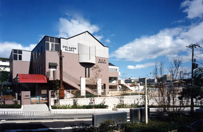 図書館と幼稚園という異なる機能の複合施設で豊中市として初めての試みである。 敷地北側のオープンスペース、グラウンド下部の駐車場等、敷地の有効利用を心がけ、動・静という正反対の性質を外壁の仕上・色彩・曲線等を取り入れ、バランスを取るよう配慮した。 平面的に制約されている3階図書館は勾配屋根とすることで空間的な拡がりを持たせた。 広域図書館ではなく、地域住民の歩行圏内という利便性から分館システムが採用された。他用途との複合化が増えていく中、地域に溶け込んでいくことが肝要であり今後の課題として、有機的運営が望まれるところである。